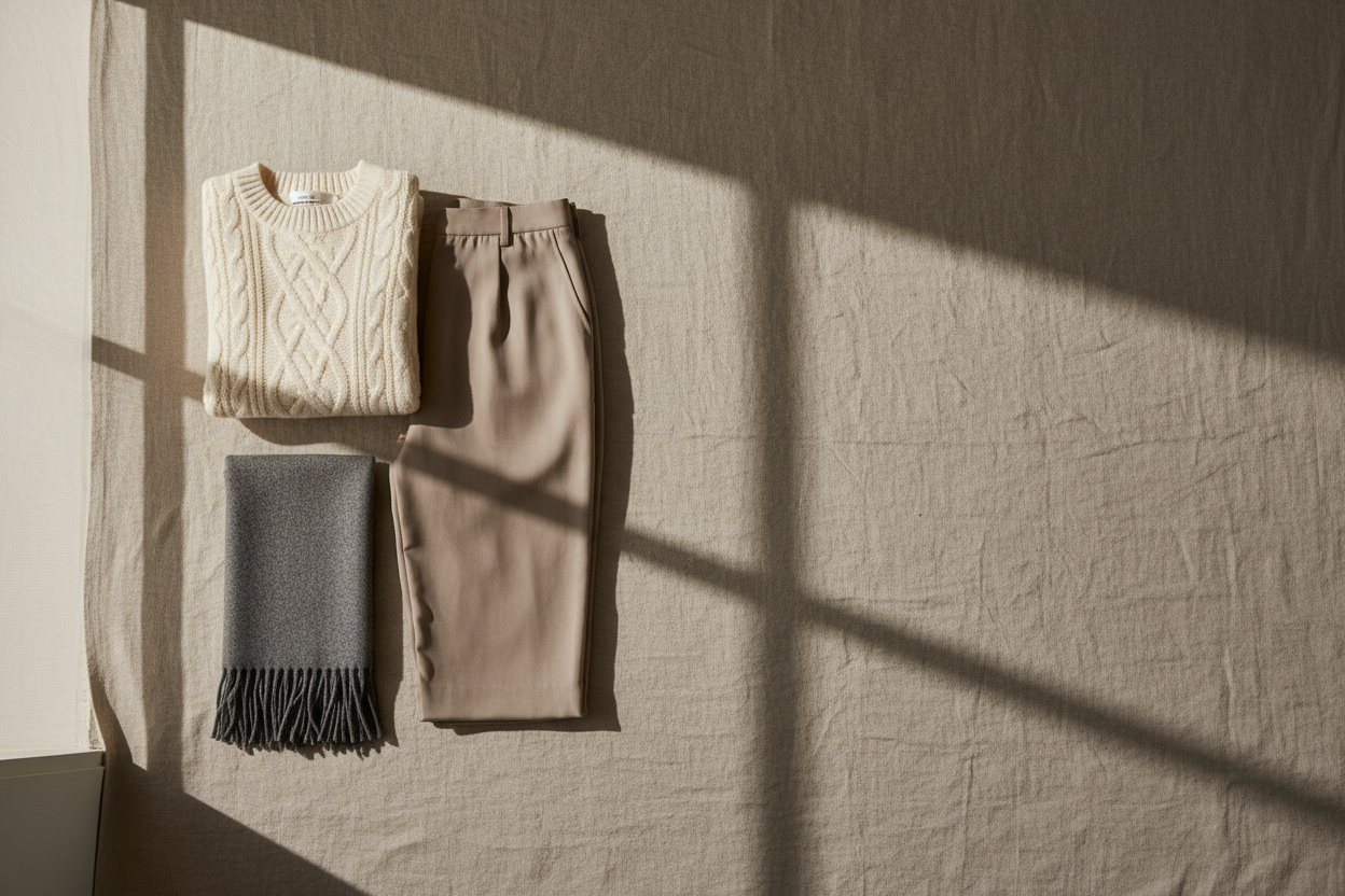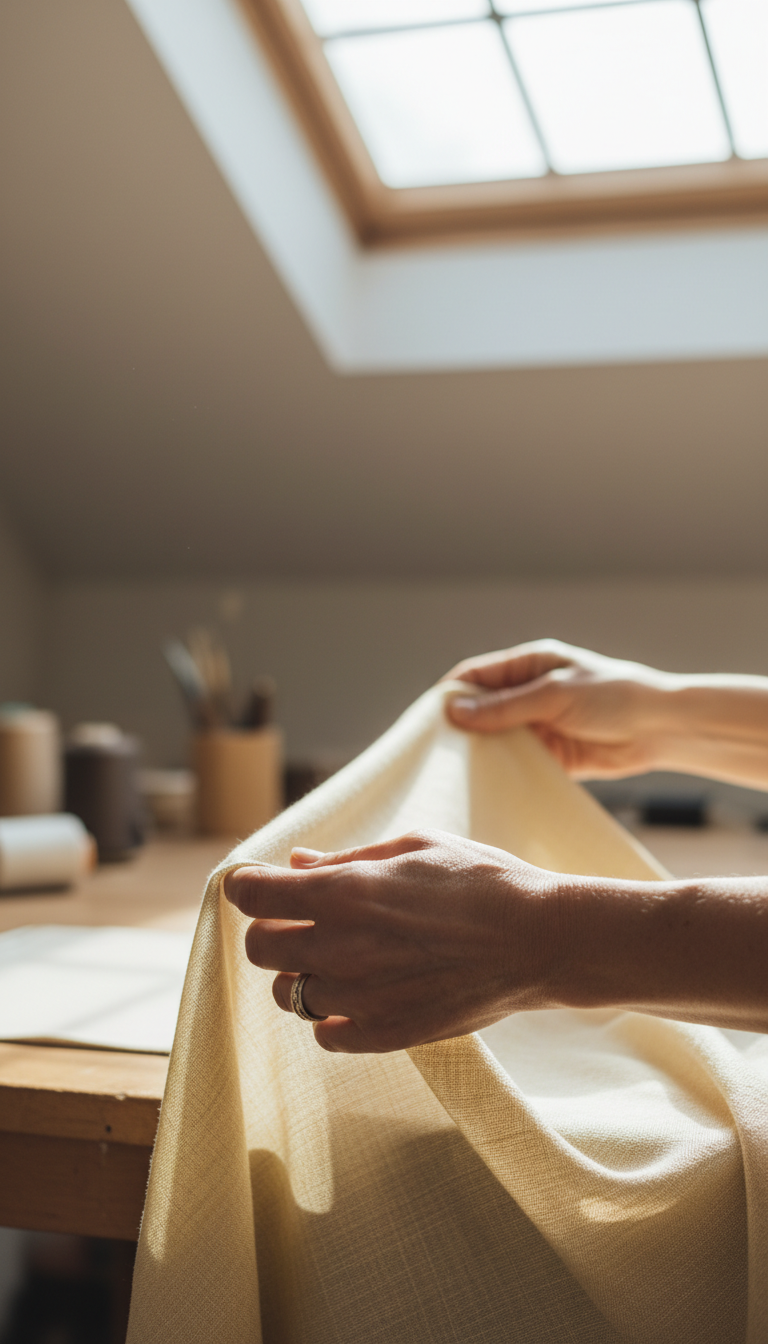Wij kiezen alleen stoffen van hoge kwaliteit uit Europese weverijen. Elk kledingstuk begint met materialen die zijn geselecteerd op gevoel, duurzaamheid en natuurlijke uitstraling.